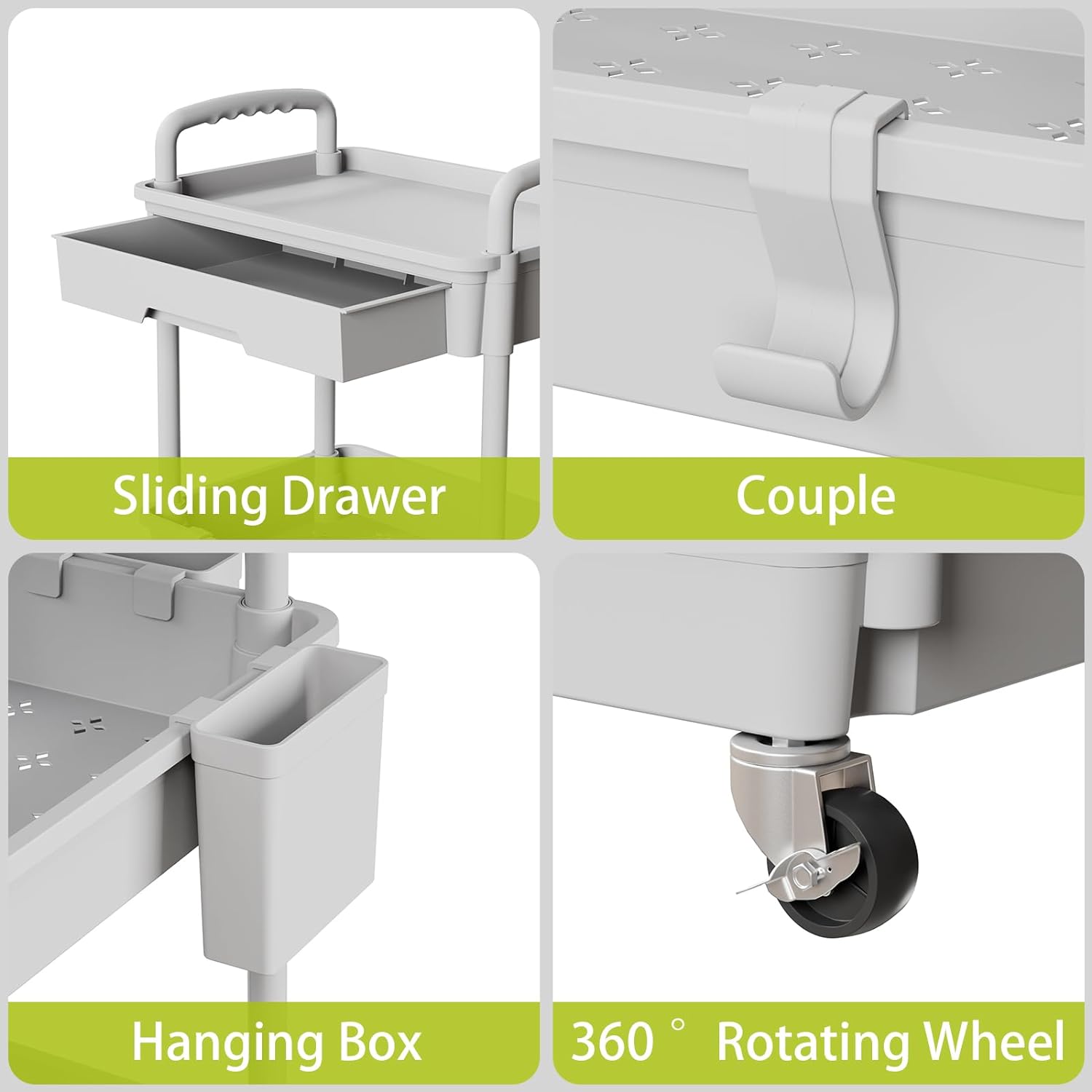 - 【Movable & Heavy Duty】 - This utility cart has 4 caster wheels that rotate 360° for easy maneuverability. Two lockable wheels ensure stability when stationary, while rubber construction on all wheels guarantees silent movement and protects floors from scratches.