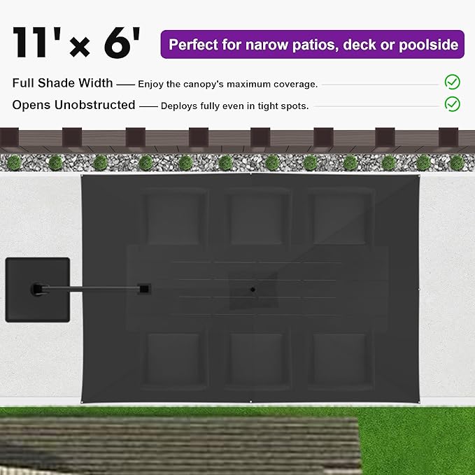 - Tilt Design: The easy-tilt system allows you to adjust the canopy angle up to 55° to the left or right, keep the shade as the sun moves throughout the day