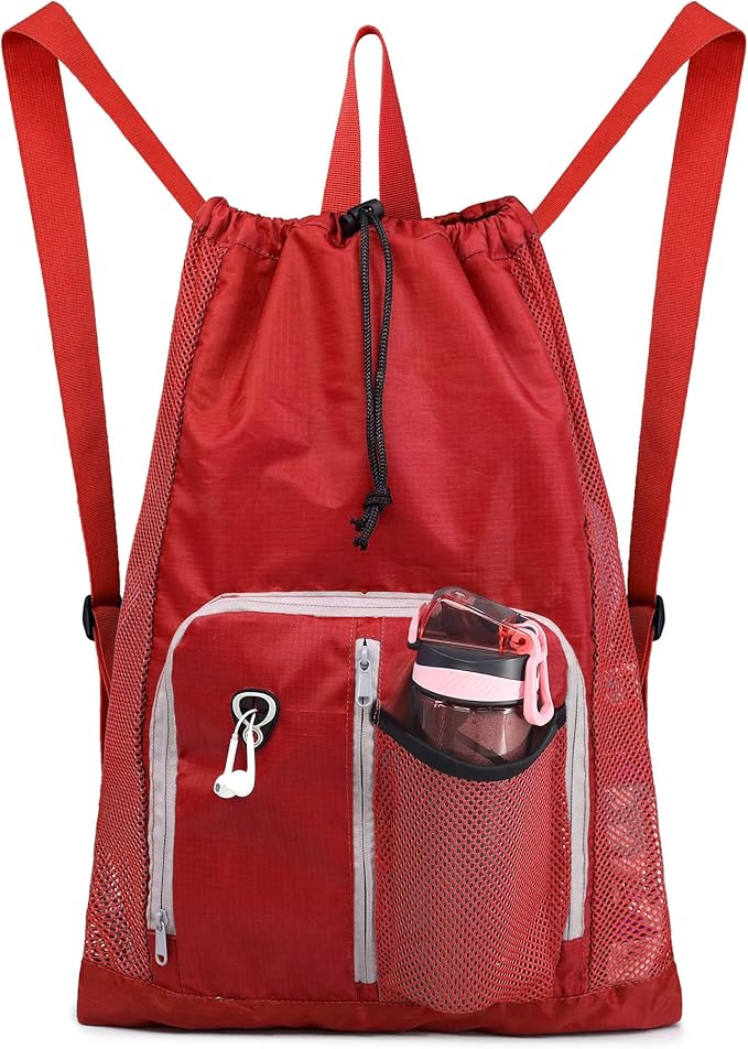 - Breathable & Machine Washable: These draw string back bags are designed with mesh on both sides, which makes the workout bag more breathable. Our swim bags for swimmers can be easily cleaned by the washer, once the beach backpack gets stained, just throw them into the washer, save your time and it dries quickly, it's perfect as travel accessories.