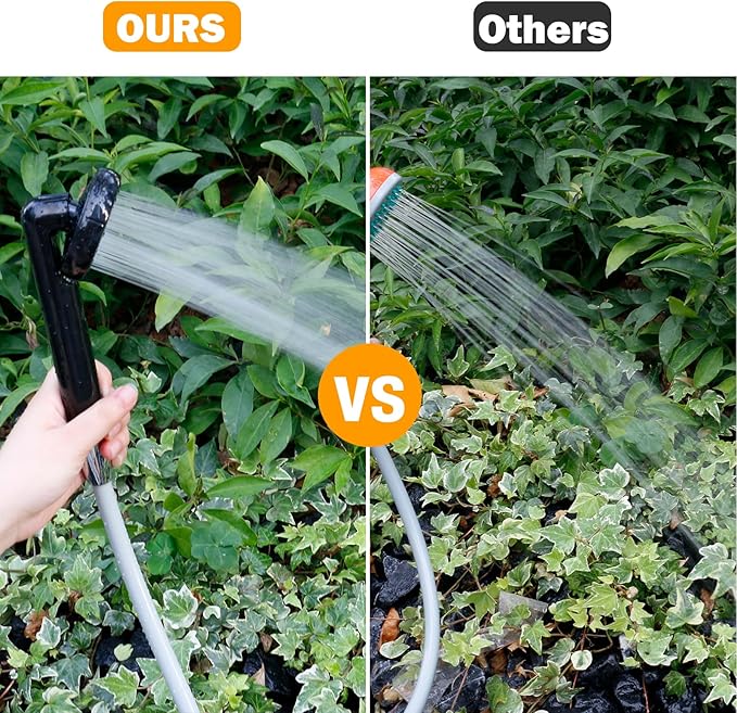 - 【Ultra-Lightweight & Clog-Proof Design】Outdoor Shower with Filter and Strong Water Flow: The portable shower for camping is equipped with a filter mesh in the pump and a replaceable filter cotton in shower head to prevent clogging and guarantee clean water. This outdoor shower kit weighs about 1.2LB, lightweight and portable to carry in luggage, backpack or car trunk, offers powerful water pressure and stable water flow (0.92 gal/min), bringing you a easy shower indoor and outdoor