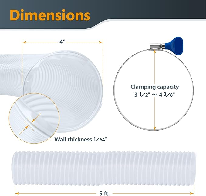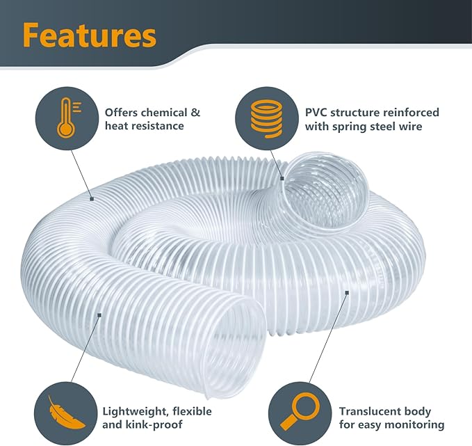 - INCLUDES: (1) 4 in. x 5 ft. left spiral transparent dust collector hose and (2) thumb screw 4 in. key hose clamps