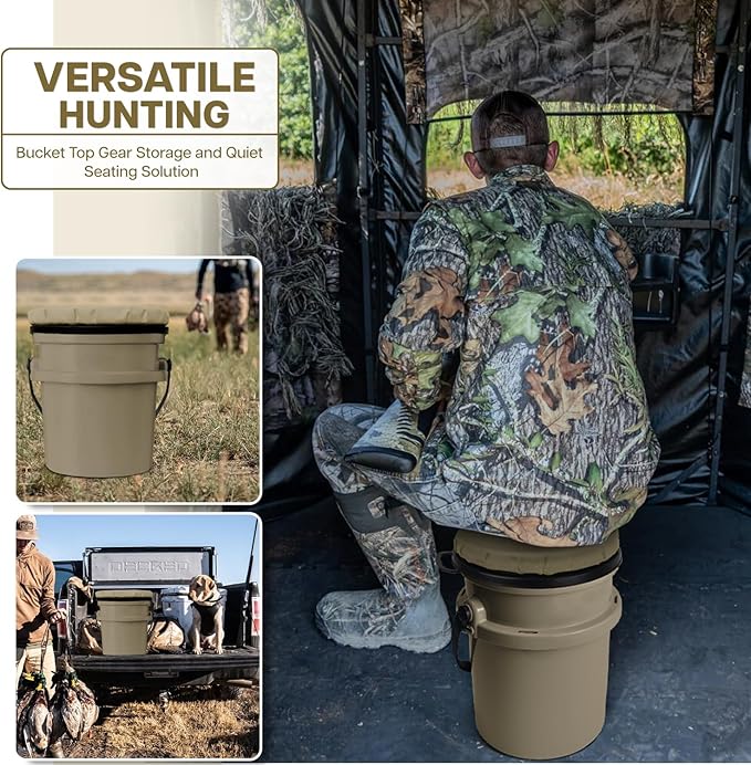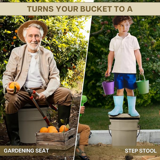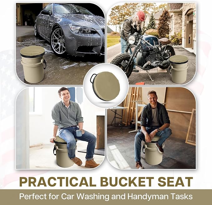 - Comfortable Padded Bucket Seat Lid 5 Gallon is A Great Gift: Save waist and knees! Perfect for the hunter, fisherman, baseball coach, field technician, plumber, gardener, husband or wife. Our bucket cover can be used anytime and anywhere and is a must-have fishing accessories and bucket accessories.
