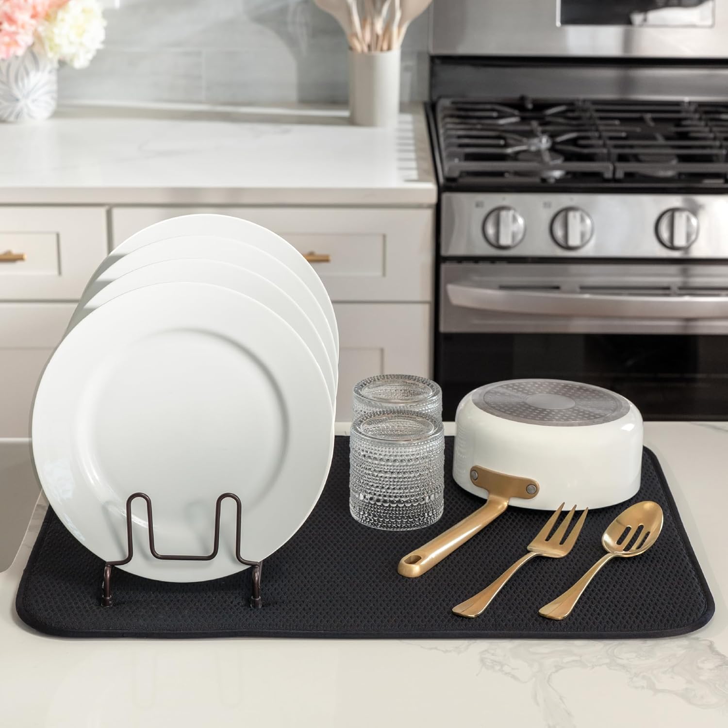 - One Envision Home by S&T INC. Microfiber Dish Dry Mat XL measuring 18 in. x 24 in.; kitchen mat for countertop absorbs up to 4 times its weight in water to keep your countertop dry, unlike a silicone dish drying mat
