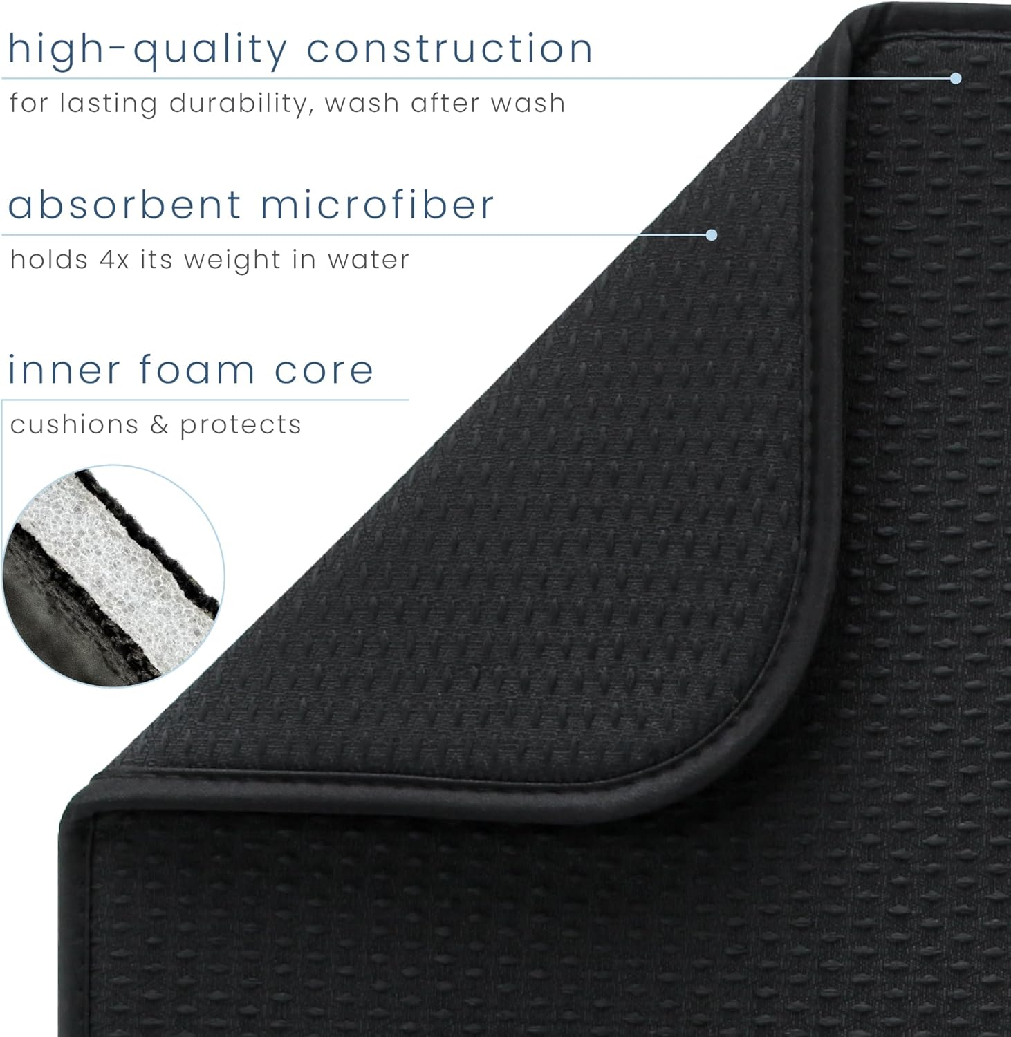 S&T INC. Dish Drying Mat XL, 18” x 24”, Absorbent Microfiber Kitchen Counter Mat, Drying Pad for Dishes, Utensils, Pots and Pans, Extra Large, Diamond Texture, Black