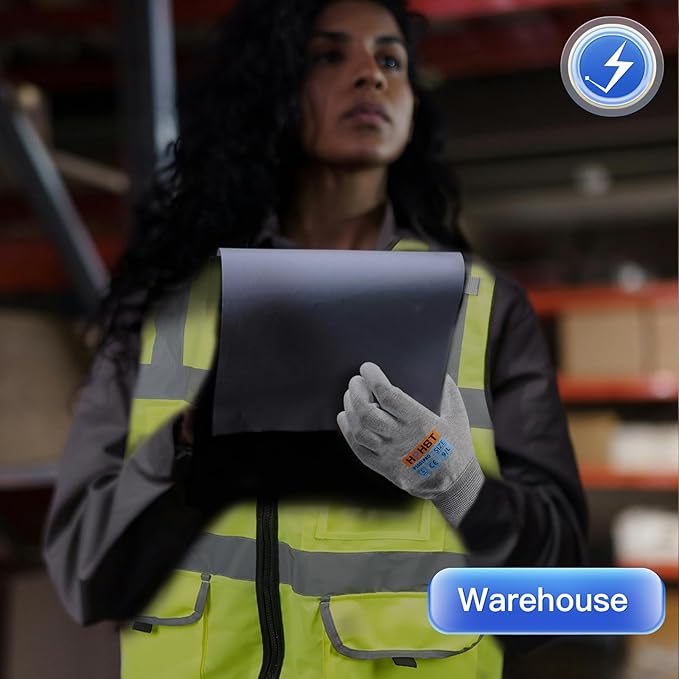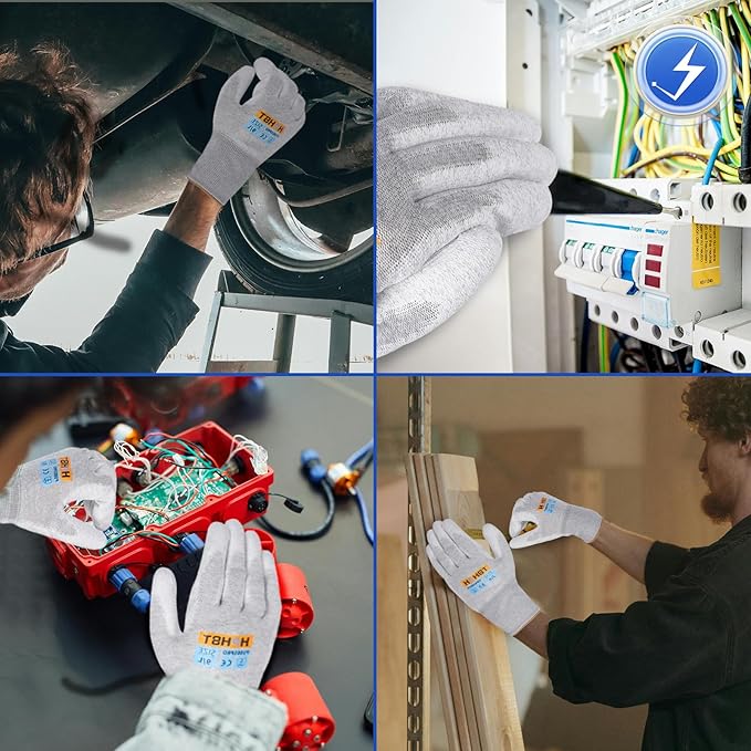 • 👏ANTI-STATIC GLOVES: Pull On closure. Operating touch screen phone or device without removing the working gloves. Dense carbon fiber provide strong anti-static ability, Finger is coated with polyurethane provides maximum grip and accuracy.