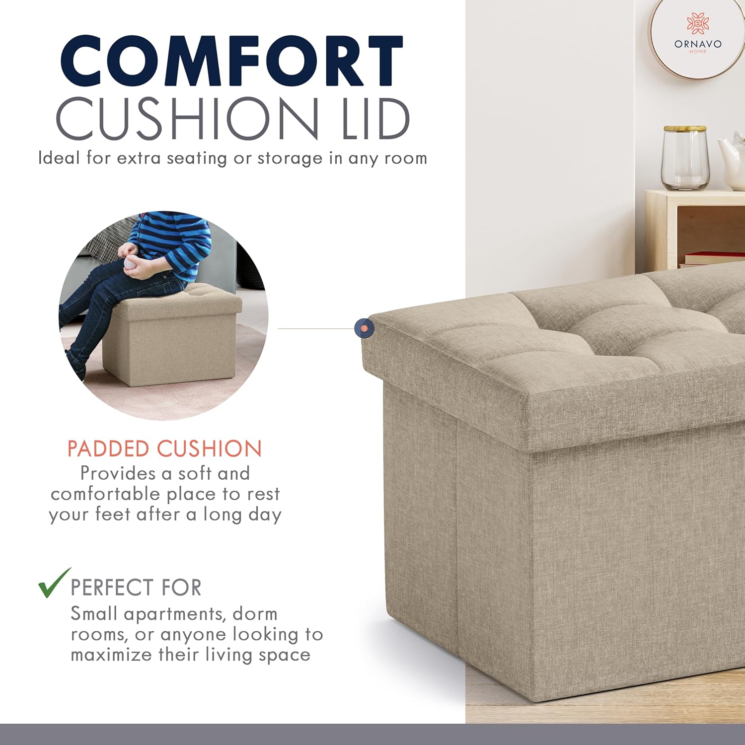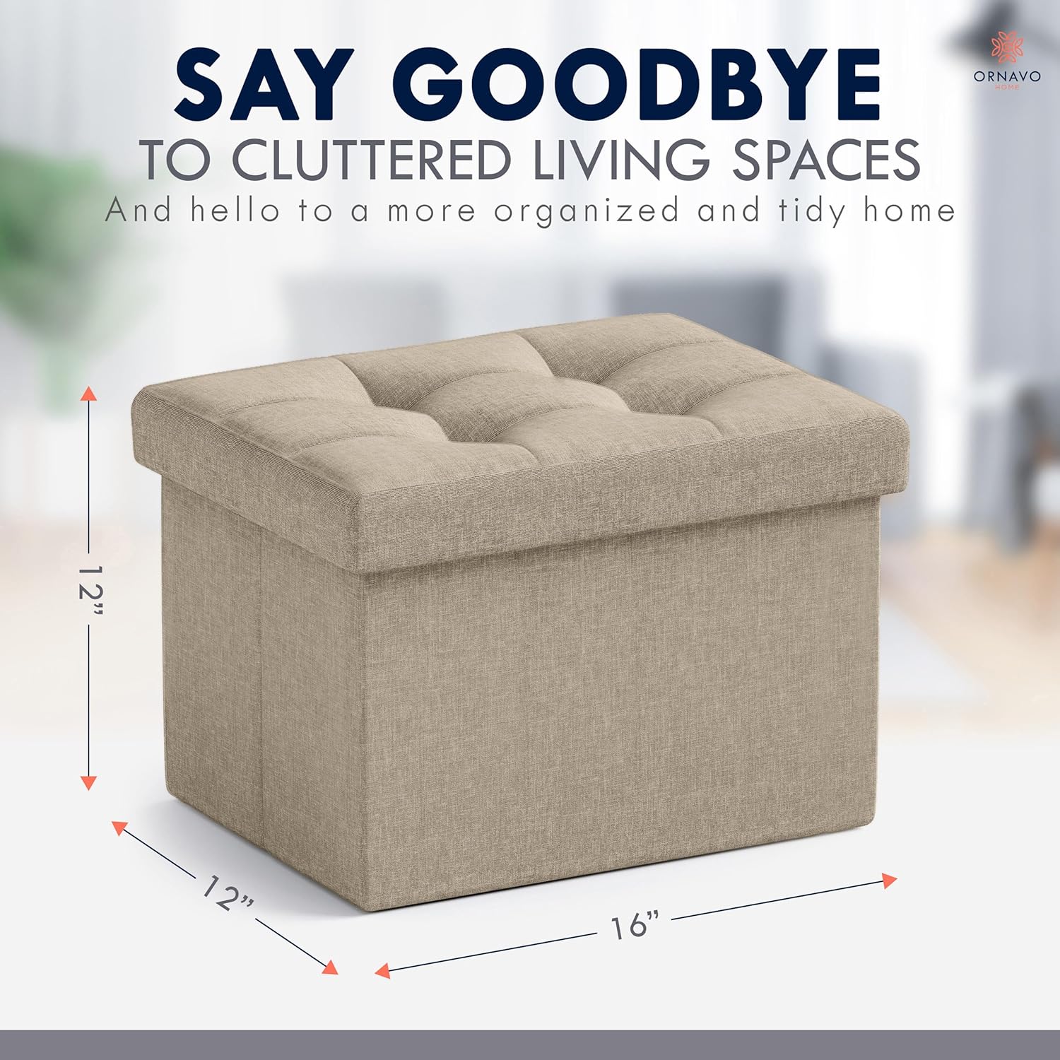 Ornavo Home Small Storage Ottoman Foldable Collapsible Rectangle Linen Ottoman Foot Rest Stool Seat, for Living Room, Bedroom, Home Office, Dorm - 12 x 16 x 12, Taupe