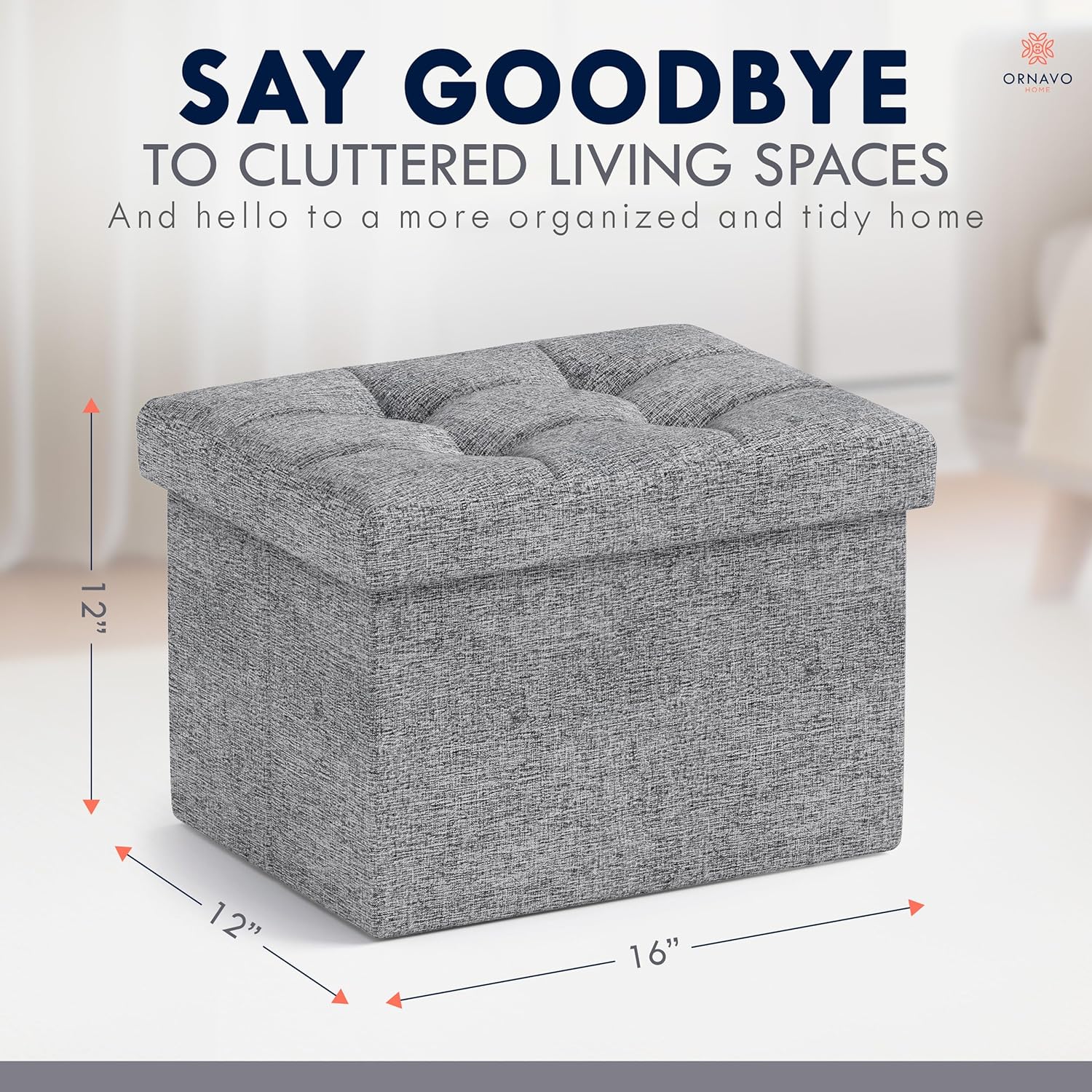 Ornavo Home Small Storage Ottoman, Set of 2, Foldable Collapsible Rectangle Linen Ottoman Foot Rest Stool Seat, for Living Room, Bedroom, Home Office, Dorm - 12 x 16 x 12, Gray