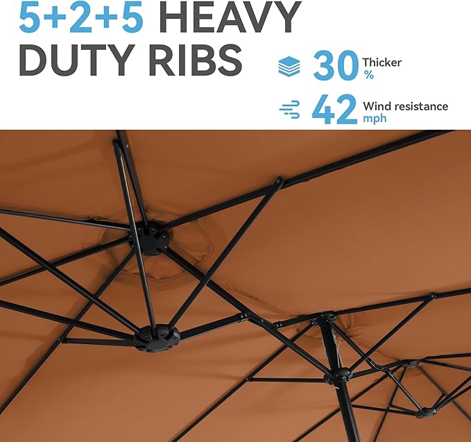 - EXTRA-LARGE SHADING AREA: This double umbrella outdoor patio can be used with 4-6 person patio dining set or outdoor furniture set. Ideal for family gatherings, outdoor dining or relaxing, it can provide ample shade area for your family and friends.