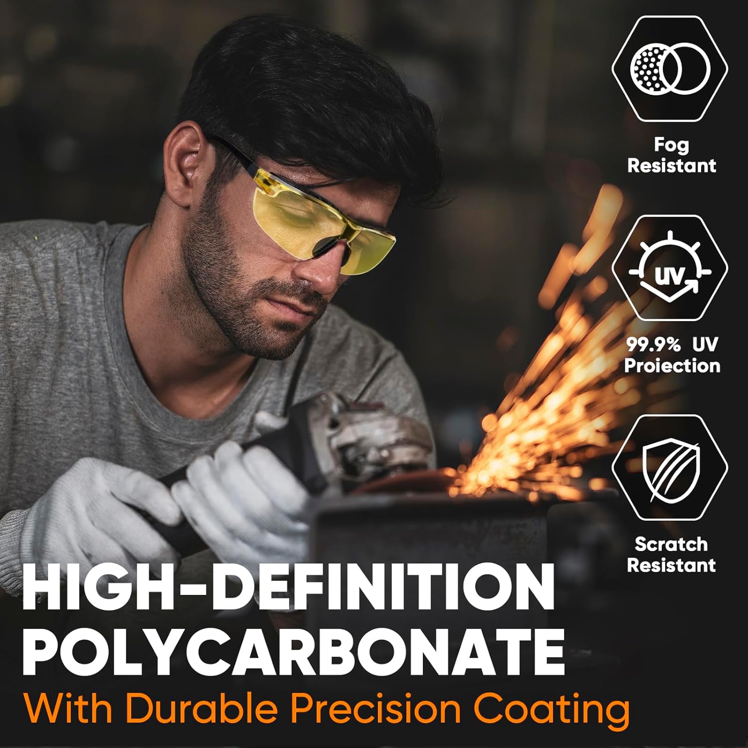 - [DURABLE AND LIGHTWEIGHT] Crafted with premium polycarbonate, these safety glasses have exceptional durability and impact resistance while remaining lightweight. They meet ANSI Z87.1 standards and feature a wraparound design for panoramic coverage.