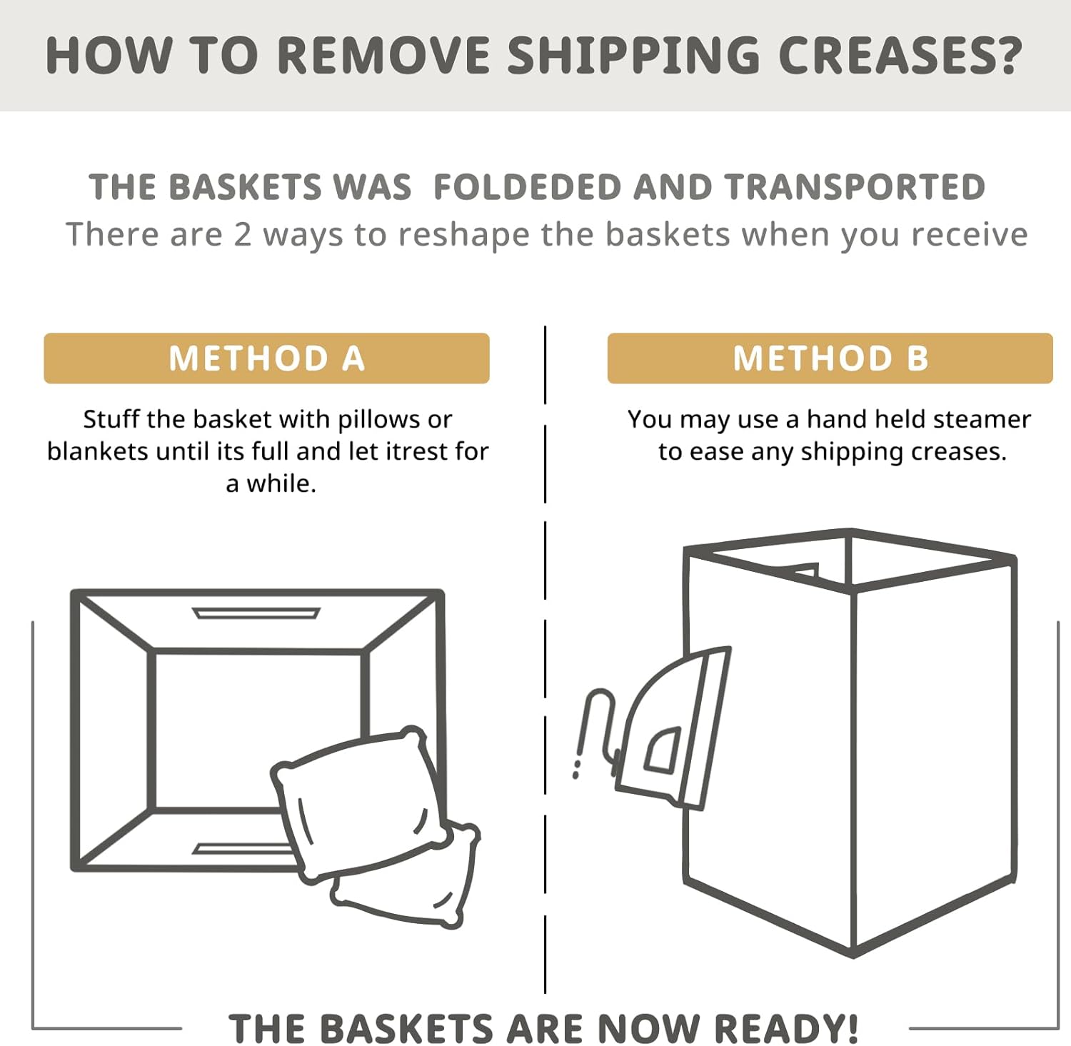 - Note: The laundry hamper is folded, but it will turn back to its elegant shape quickly if you fill it with some towels or blankets, and iron is great idea to remove the creases