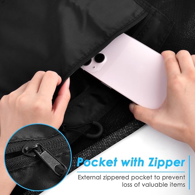 - ZIPPER BAG: 12*9.5 inch, large front zippered pocket great for storage accessories like clothes, towel, phone, whistle, timer and so on