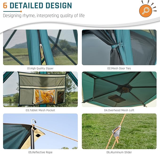 - Included Components : Carry Bag, Instant Pop Up Screen Tent with Awning, 11.5FT x 10FT x 82IN, 6 Person Camping Tent with Floor, Large Family Tents Screen House Room with Rainfly, Hexagon Hub Tent, Easy Up Tent for Outdoor Camping Picnic, Stakes, Rainfly Carry Bag, Instant Pop Up Screen Tent with Awning, 11.5FT x 10FT x 82IN, 6 Person Camping Tent with Floor, Large Family Tents Screen House Room with Rainfly, Hexagon Hub Tent,β¦ See more