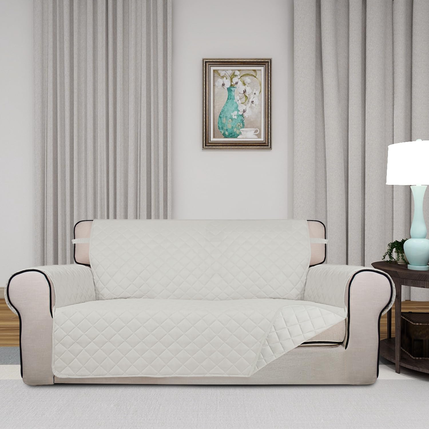 PureFit Reversible Quilted Sofa Cover, Water Resistant Slipcover Furniture Protector, Washable Couch Cover with Non Slip and Elastic Straps for Kids, Dogs, Pets (Oversized Loveseat, Ivory/Ivory)