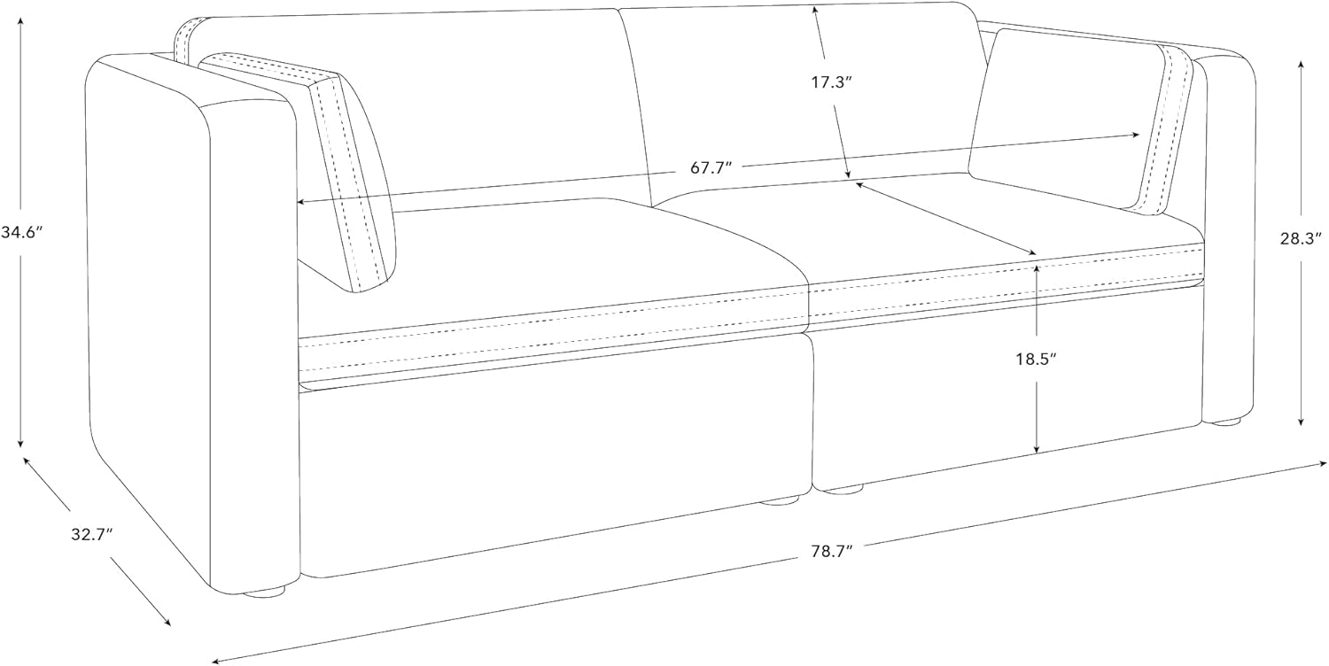 - 2-Piece Modular Sofa - CHITA modular couch features clean and classic design with comfortable seats to offer you a never ending relax after a long day. Individual seat dimension: 34''W x 21.5''D x 18.5''H. Overall sofa dimension: 78''W x 33''D x 35''H.