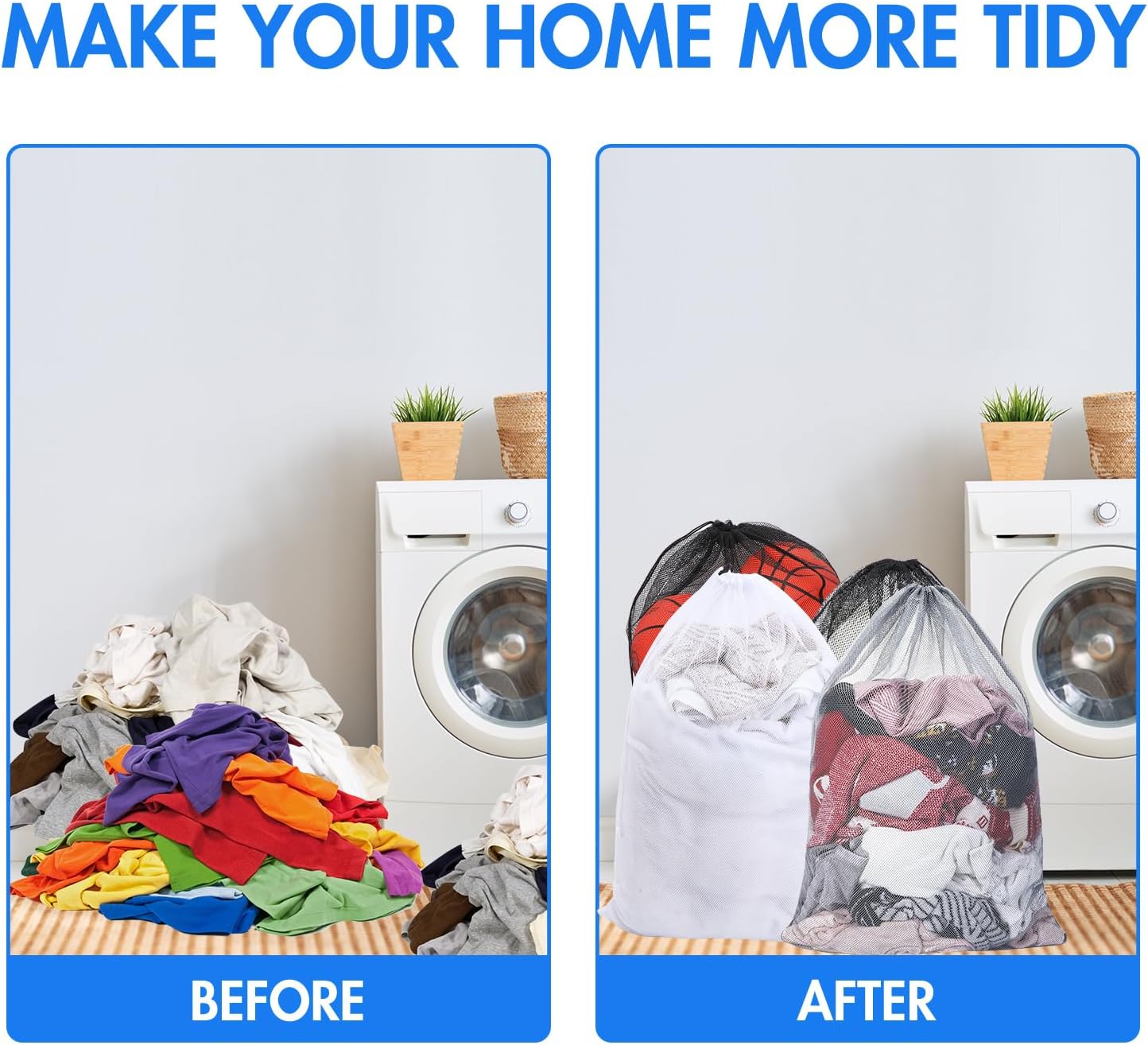 Berlune 30 Pack 24 x 36 Inches Large Mesh Bags for Laundry, Wash bags, Sturdy Mesh Material Closed with Drawstring, Factory, University, Dormitory, Travel and Apartment Dweller (White, Black, Gray)