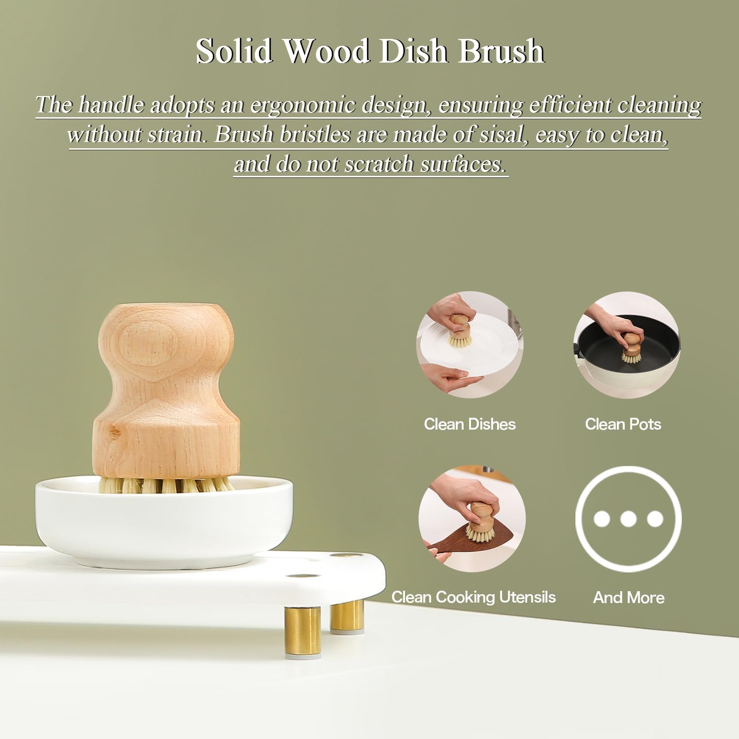 - [Complete Kitchen Cleaning Solution] This set includes one kitchen dish soap dispenser, one hand soap dispenser, a kitchen dish brush, and a ceramic brush holder, all neatly arranged on a stone drying tray.