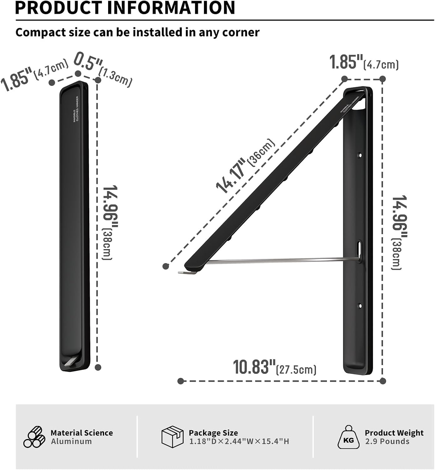 - 【Sturdy and Durable Wall Clothes Hanger】 can withstand up to 60 lbs. 100% High Quality Metal, rustproof, waterproof, sturdy and durable, easy to hang and dry wet clothes while doing laundry