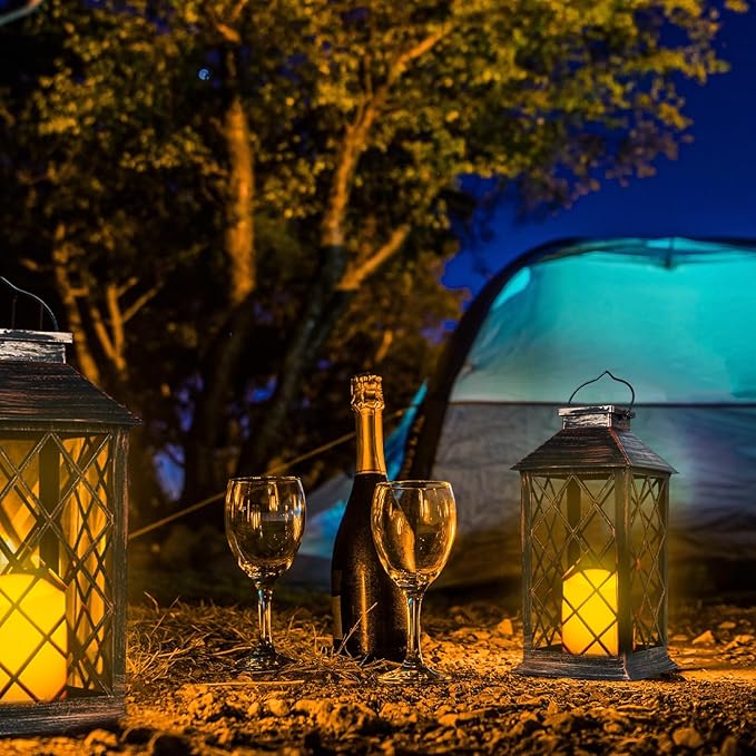 - 【Brighten Your Garden】The solar outdoor lanterns, with retro appearance, warm white LED flickering flameless Candles and hollow out metal veneer, making it casts bright and warm light in darkness, creating a warm and pleasant atmosphere. This solar hanging lanterns is an ideal decorative light for daily use as well as special occasions like Halloween, Christmas and Easter Holidays.