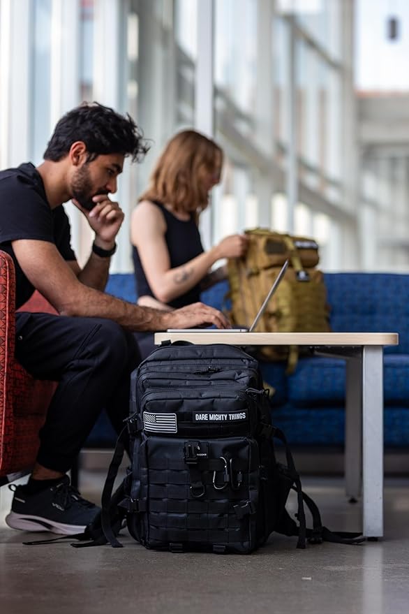 - ๐ฆ MULTIROLE TACTICAL EFFICIENCY: The AMERICANPHOENIX backpack is a fusion of military and lifestyle. With padded 17inch laptop & 13inch tablet sleeves, cushioned shoulder straps, ventilated back panel, MOLLE, D-rings, and an adaptive volumetric design, it is meticulously crafted to serve as an everyday carry backpack (EDC), comfortable work backpack, travel backpack, or a robust hiking backpack.