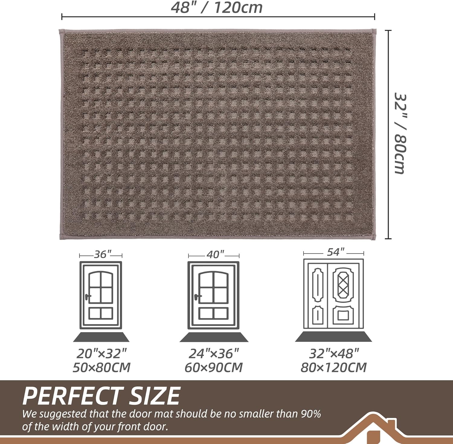 - Stylish and Low Profile Design: Fashionable Waffle patterns are suitable for most kinds of home dรฉcor. Our doormats measure 32" x 48" x 0.45", low-profile design and reinforced overlock edges to ensure that doors won't get stuck or the door rug go curling. Note: Please confirm the height of the door gap before purchasing