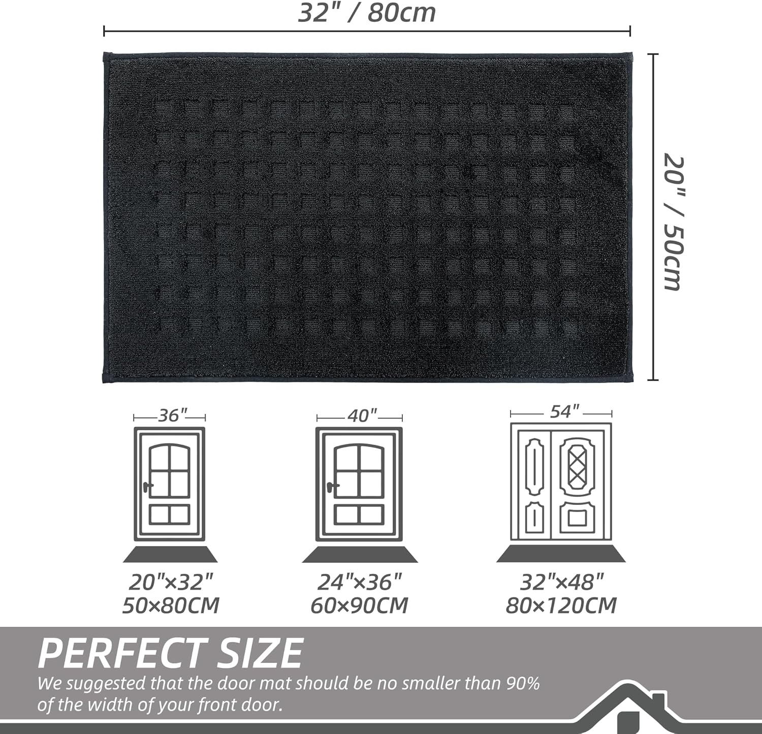 - Stylish and Low Profile Design: Fashionable Waffle patterns are suitable for most kinds of home dรฉcor. Our doormats measure 20" x 32" x 0.45", low-profile design and reinforced overlock edges to ensure that doors won't get stuck or the door rug go curling. Note: Please confirm the height of the door gap before purchasing