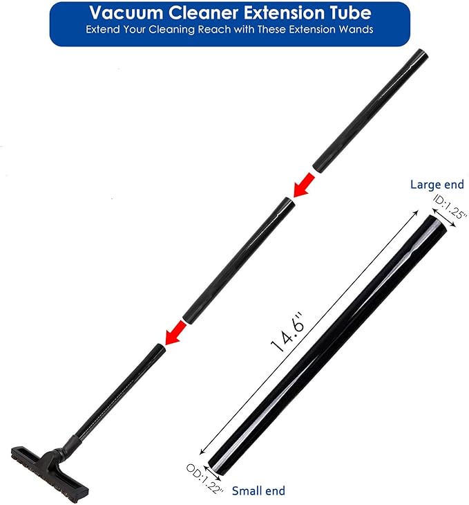 - ✅ 2 PCS VACUUM EXTENSION WAND: Elevate your cleaning capabilities by using these wands individually or in combination to reach those challenging spots. The large end features a 32mm inner diameter, and the small end has a 31mm outer diameter, making it compatible with 1-1/4inch(32mm) attachments