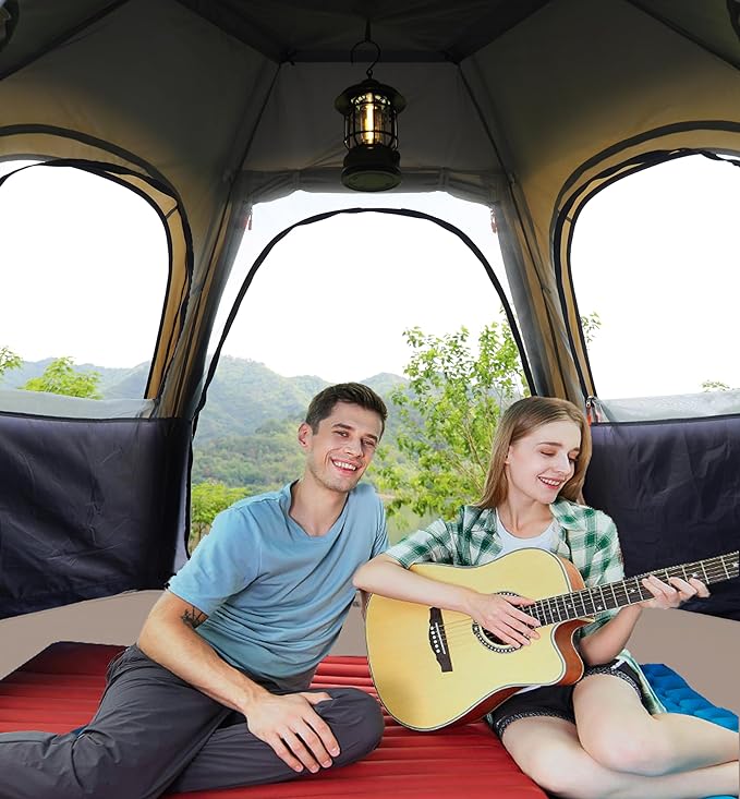 - The tent features a hexagonal structure:Offering enhanced stability and wind resistance, ensuring better performance in harsh weather conditions. Its unique design provides extra strength and durability