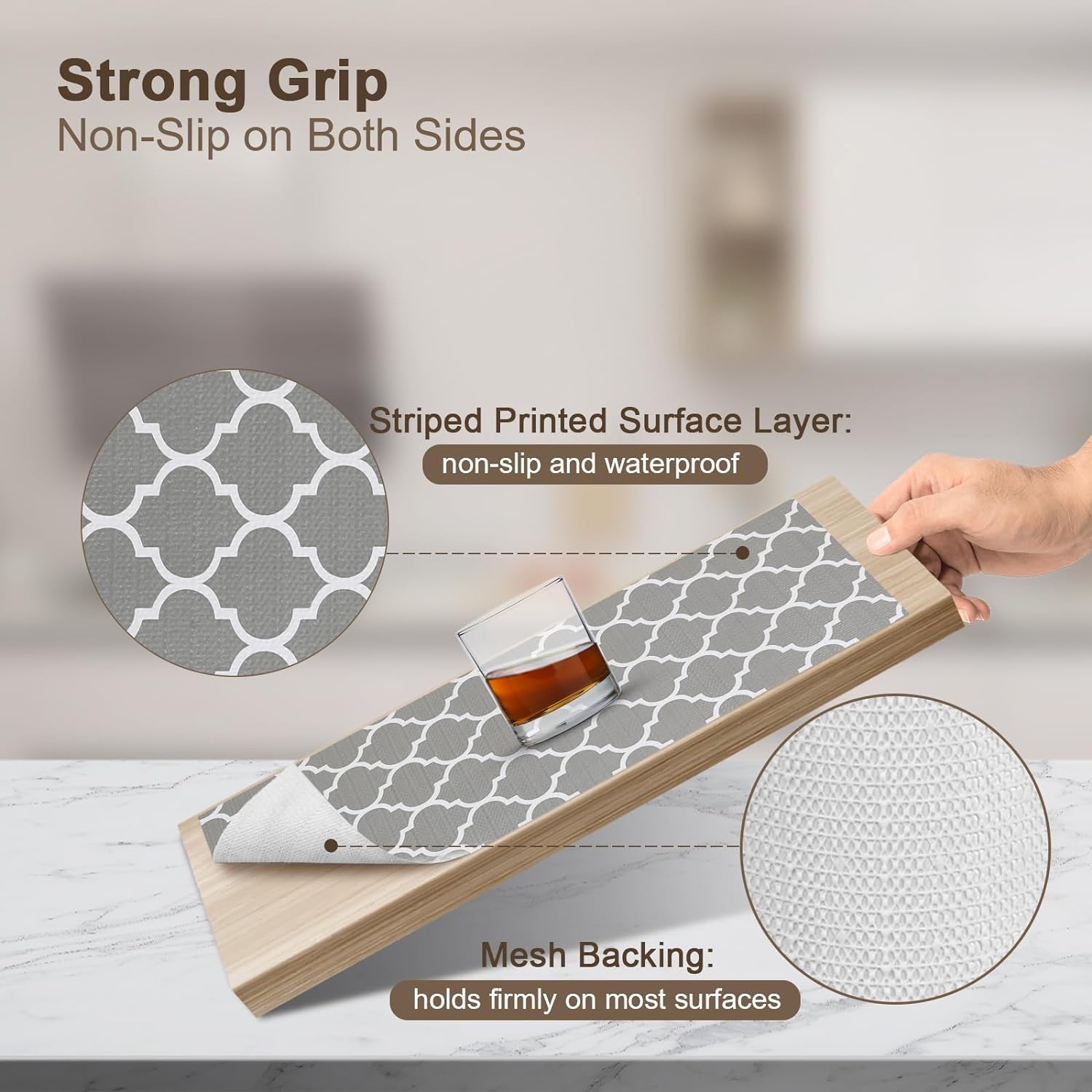 - 【NON-ADHESIVE】Our shelf liners for kitchen cabinets non-adhesive, avoiding the damage that glue can cause to cabinet, drawer, table and shelf surfaces.