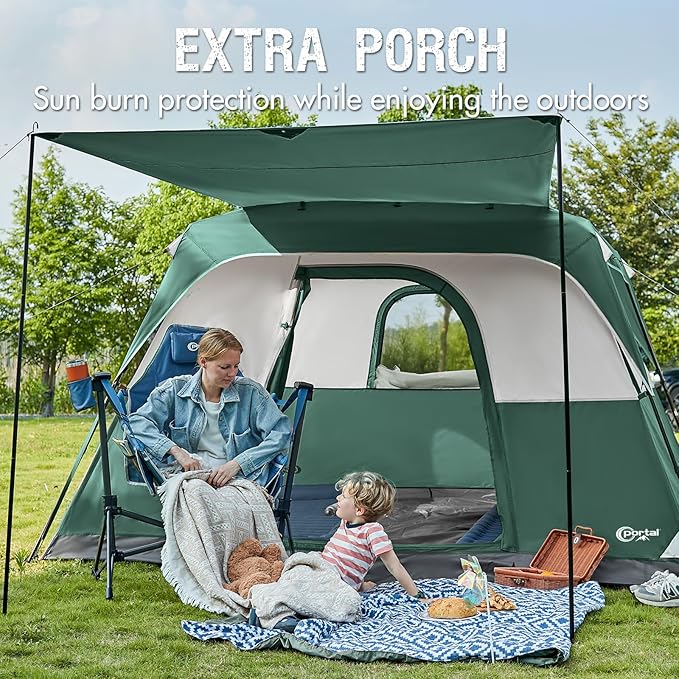 PORTAL 6 | 8 | 10 Person Family Camping Tent with Porch, Big Family Camping Tent with Tall Height, Good Ventilation, Water Resitant Large Tent for Outdoor Camping, Backyard