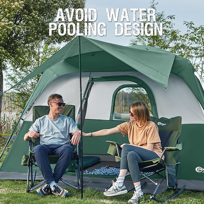 - Roomy Interior & 76" Tall: Measuring 10' x 9' x 76", this 6 person tent fits 2 queen size air mattresses or 6 sleeping bags. The 76" center height ensures enough space for standing and comfortable movement inside the tent.