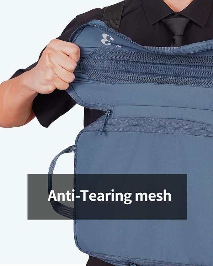 - 【Compression Design Save More Space】: ECOHUB compressible packing cubes come with an extra zippered section for content compression. Comprssion zippers allow 10cm expansion. Unzip the compressed part, then have room to expand and add more items later. Compression design saves you space inside your luggage by pressing the air out of mesh and zipping up. Adjust and maximize your packing space while keeping your items easily accessed.(PATENT PENDING)