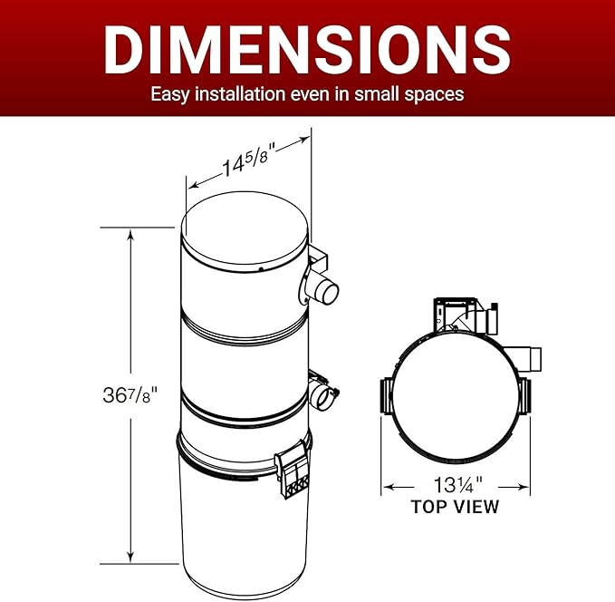 - Air Performance: Unleash 650 air watts of powerful suction & self-cleaning filtration with our Central Vacuum System. Made for areas between 2,000 and 7,000 sq ft, it's compact & sleek for discreet cleaning. The smart choice for your home!