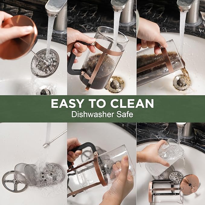 - EASY TO CLEAN: Cleaning is simple and eco - friendly—disassemble the parts and wash them in the dishwasher or by hand. And with our top - notch customer service, you can enjoy peace of mind with every brew. Join the sustainable coffee movement and savor the difference with our French Press!
