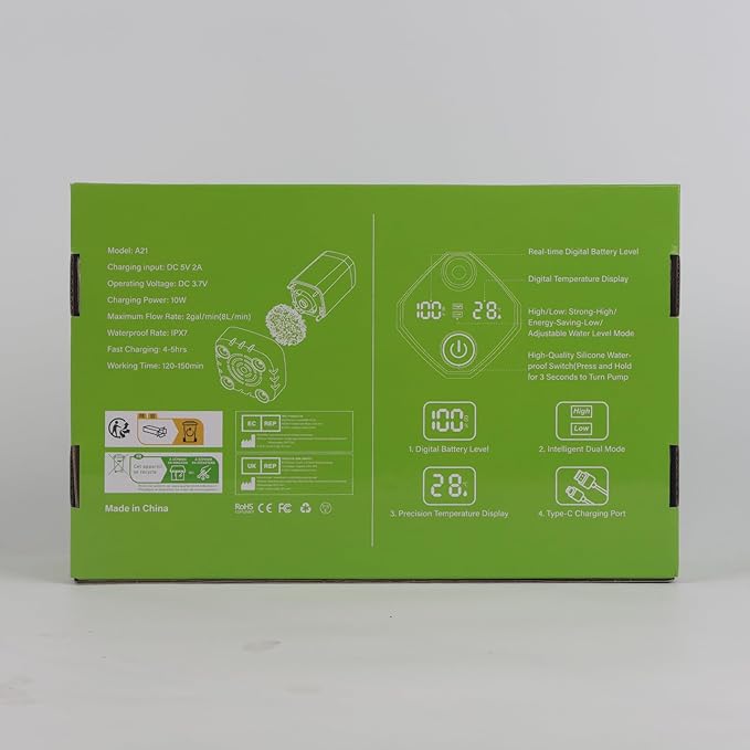 - 【No Heating Function】【Extended Battery Life】 With a long-lasting 6000mAh battery capacity, our camp shower pump can work continuously for 120-150 minutes. Plus, its Type C interface allows for convenient mobile charging such as mobile phone charger (5V 0.5-2A), mobile power, laptop or car USB output charging. The port comes with a silicone waterproof cover for safe use.