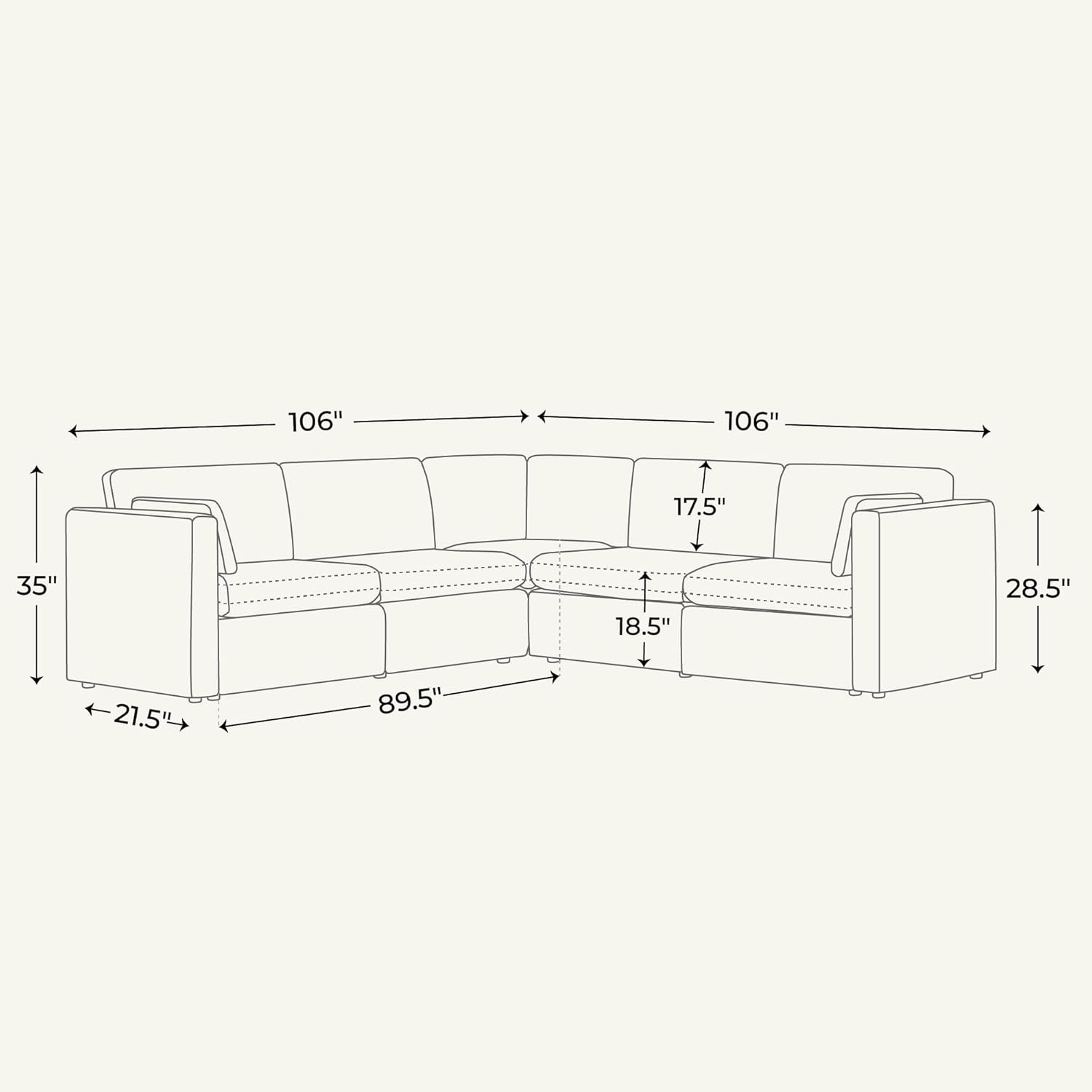 - 5-Piece Modular Sofa with Larger Seats - CHITA modular couches feature clean and classic design with comfortable and wider seats to offer you a never ending relax after a long day. Each seat has a 34'' seat width - 30% larger than most counterparts. Individual seat dimension: 34''W x 21.5''D x 18.5''H. Only three seats are needed to achieve a 106'' overall width.
