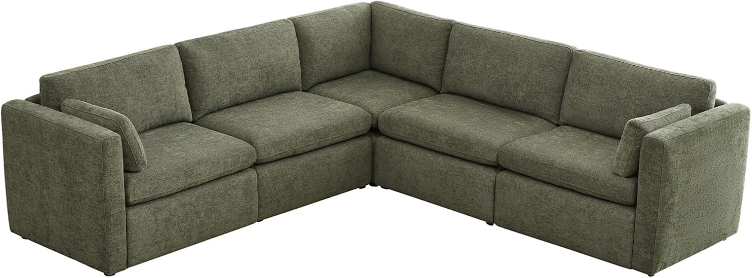 CHITA Oversized Modular Sectional Sofa Set, FSC Certified Extra Large 5 Seat V Shaped Cloud Couch for Living Room, 106 inch Width, 4 Seater and 1 Middle Corner, Moss Green