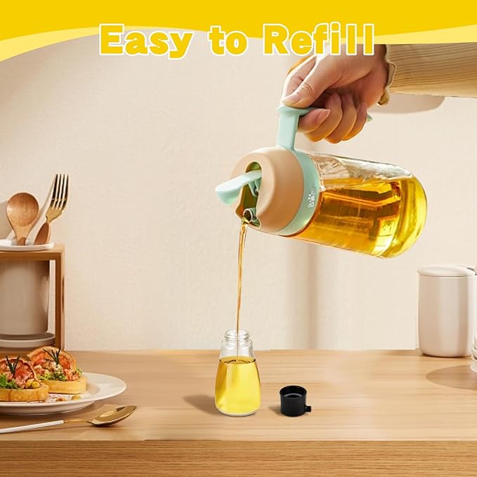 - Oil Control Hole: The spout of the oil dispenser allows you to control the exact amount of oil, when you press the hole at the lids, it will slow the flow of oil without helps you maintain a healthy diet worrying about spills or excess