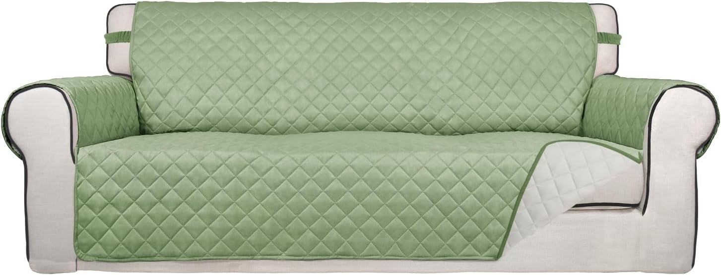 PureFit Reversible Quilted Sofa Cover, Water Resistant Slipcover Furniture Protector, Washable Couch Cover with Non Slip and Elastic Straps for Kids, Dogs, Pets (Oversized Sofa, Sage Green/Ivory)