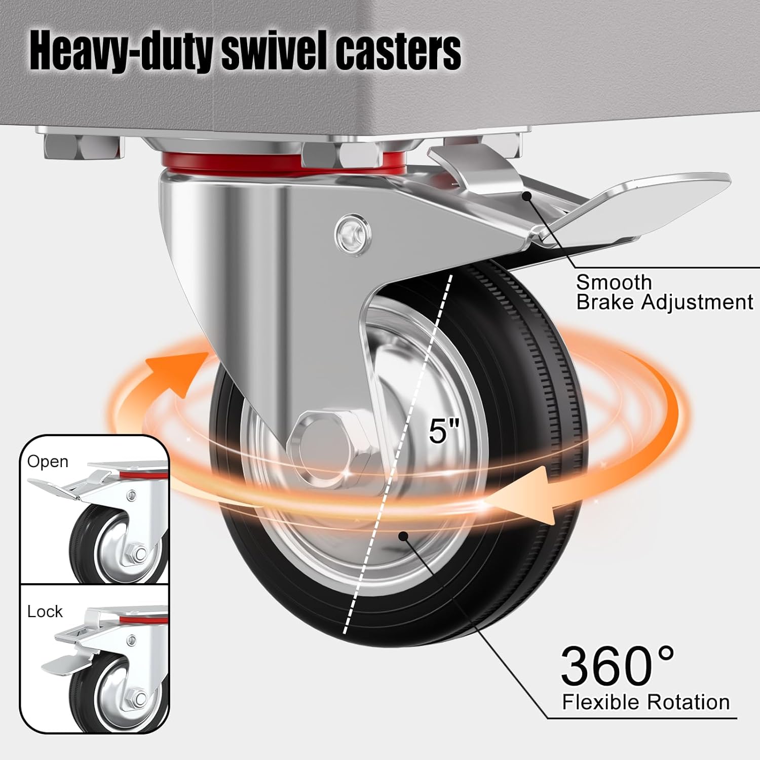 - Mobility and Convenience: Equipped with four sturdy 360-degree swivel wheels(2 with brakes and 2 universal) for easy mobility and transport. Ergonomic push handle make Move it effortlessly around your workspace or take it to different job sites, ensuring your tools are always within reach.