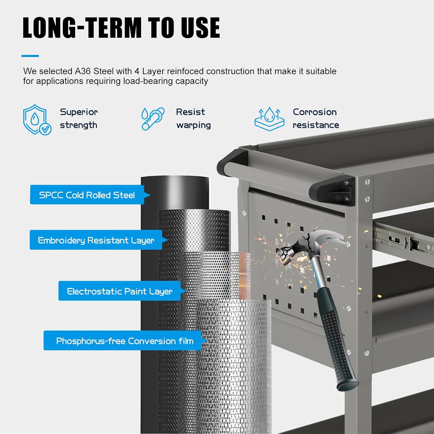 - Secure Storage: With a lockable drawer, Maemttes tool cart offers secure storage for your valuable tools. You can have peace of mind knowing that your tools are safely stored and protected against unauthorized access.