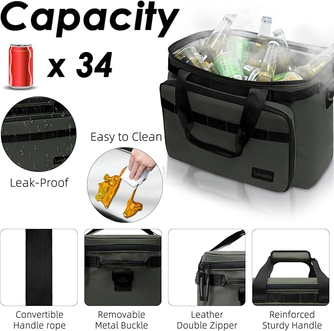 - 【Generous Size】: Measuring 18*8.5*8.3 inches, this cooler offers ample space. It can easily accommodate up to 34 cans of your favorite beer or 20 bottles of beverages, ensuring you never run out of refreshing drinks.