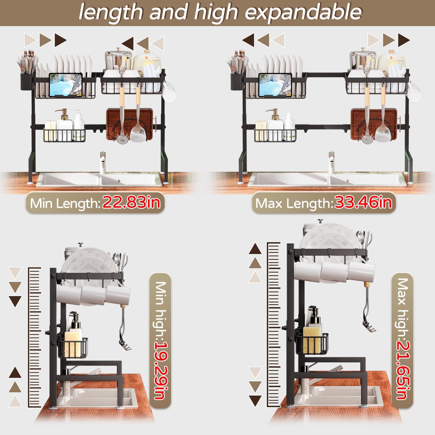 - 【Expandable Design】: Adjustable height (19" - 22" H) and length (24" - 35.5" L) to fit most sinks.