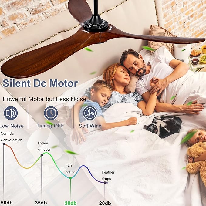 - 【Solid wood ceiling fan】: dearnow ceiling fan is made of matte black steel + natural Mouton wood fan blades, the wood is lightweight, strong and won't warp. The ceiling fan comes with three different lengths of boom, q respectively: 5-inch, 10-inch, 14-inch, users can choose to install by themselves according to their needs.