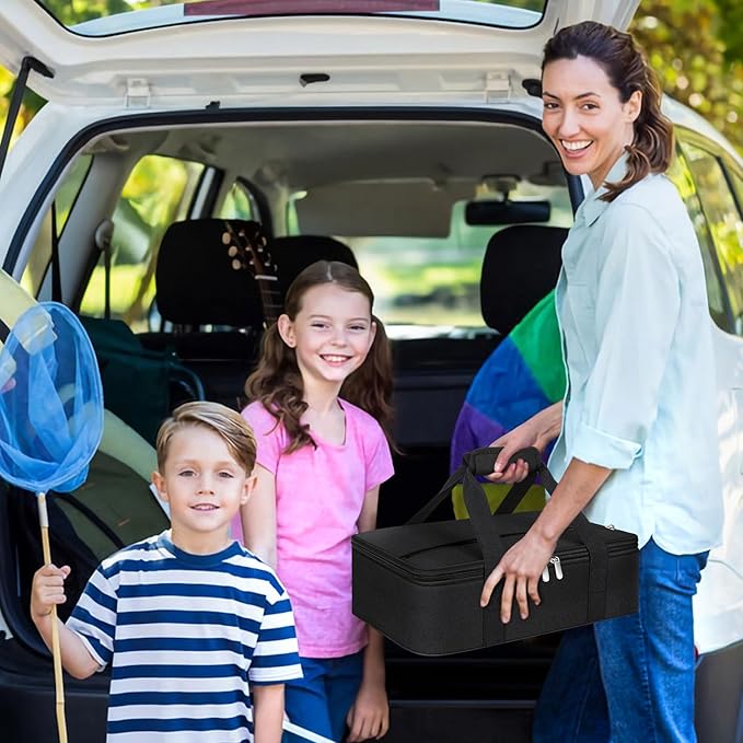 Insulated Casserole Carrier, Portable Casserole Carrier for Hot or Cold Food Lunch Tote Warmer or Cooler Bag, Lasagna Lunch Bag for Potluck Parties- Fits 9" x 13" Baking Dish-Black
