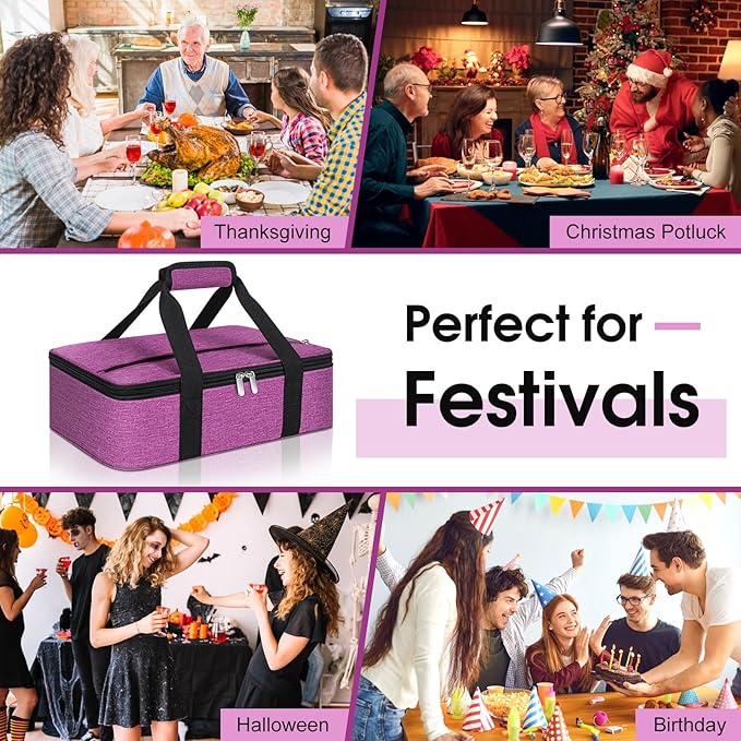 Insulated Casserole Carrier, Portable Casserole Carrier for Hot or Cold Food Lunch Tote Warmer or Cooler Bag, Lasagna Lunch Bag for Potluck Parties- Fits 9" x 13" Baking Dish-Rose Purple
