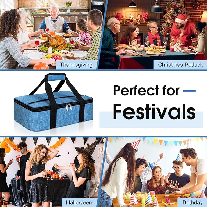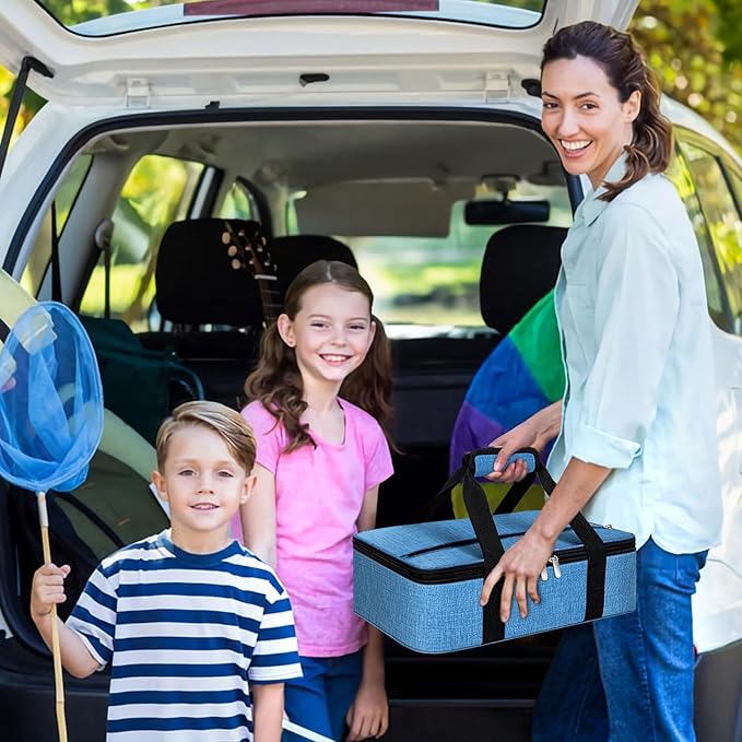 Insulated Casserole Carrier, Portable Casserole Carrier for Hot or Cold Food Lunch Tote Warmer or Cooler Bag, Lasagna Lunch Bag for Potluck Parties- Fits 9" x 13" Baking Dish-Azure