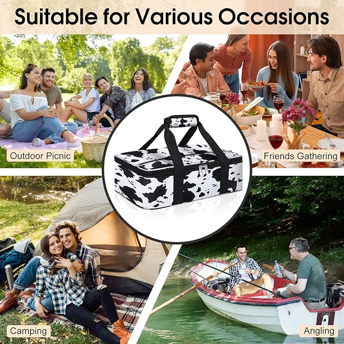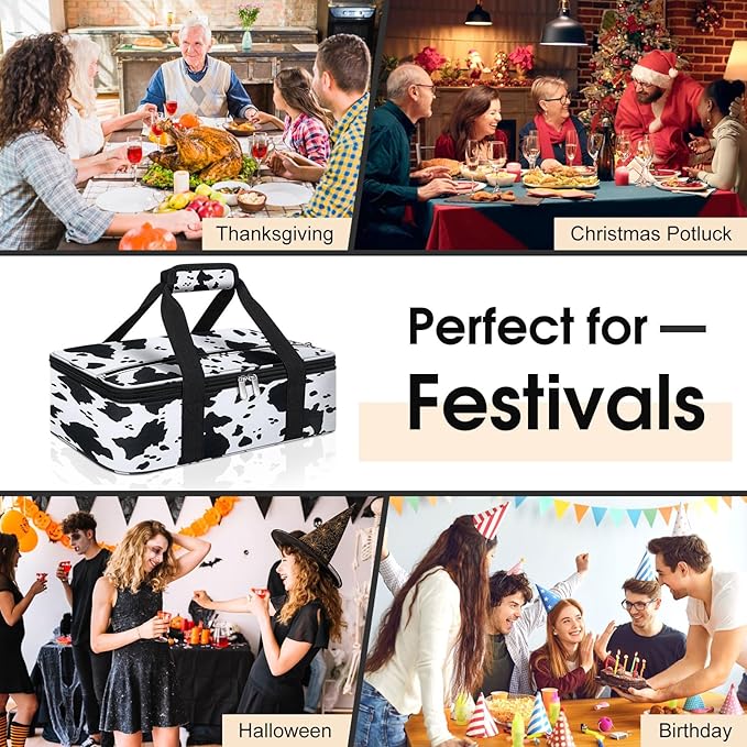 Insulated Casserole Carrier, Portable Casserole Carrier for Hot or Cold Food Lunch Tote Warmer or Cooler Bag, Lasagna Lunch Bag for Potluck Parties- Fits 9" x 13" Baking Dish-Cow Pattern
