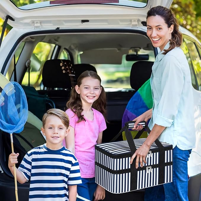 - Versatility: With its large capacity, simple and versatile color options, and lightweight construction, our insulated bag is perfect for storing and transporting food to potluck parties, picnics, tailgates, BBQs, and cookouts.