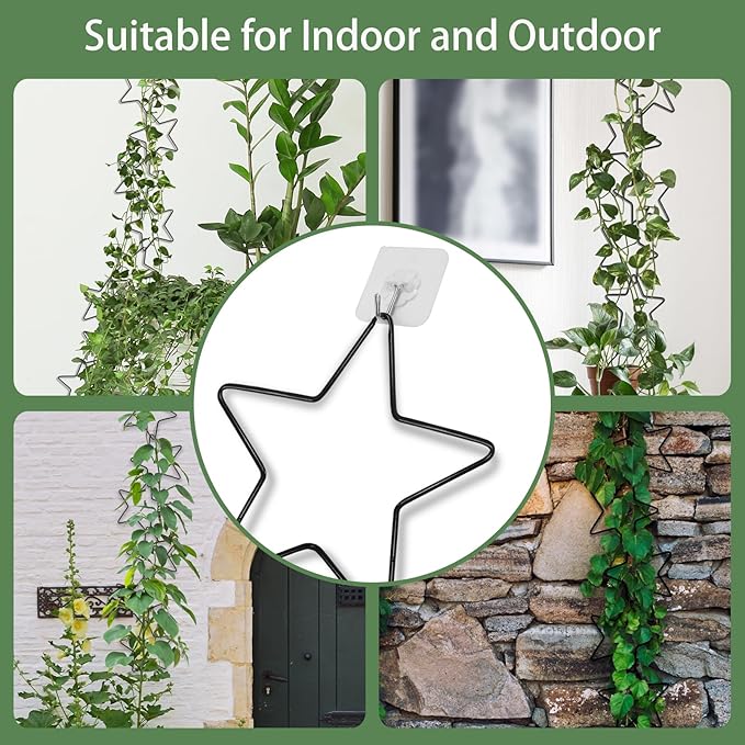 - Set Includes: Our set includes a string of 15 star-shaped trellis for climbing plants, 6 wall picture hooks, 6 wall adhesive hooks, and 20 plant ties, suitable for both indoor and outdoor plant decorations