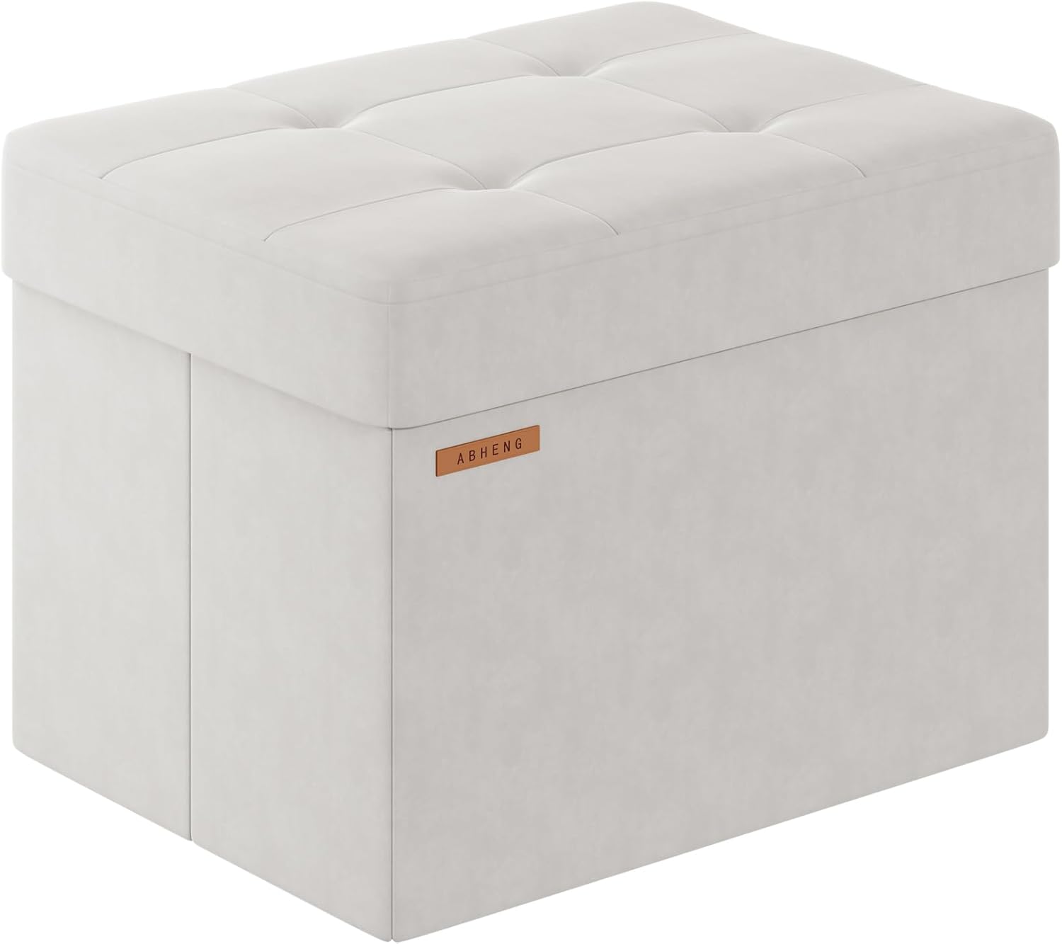 Folding Storage Ottoman, Velvet Storage Bench, Footrest, End Stool, Foot Stool,for Living Room, Bedroom and Office,12.2 x 16.1 x 12.2 Inches, 300 kg Load Capacity,Cream White, UASND03W